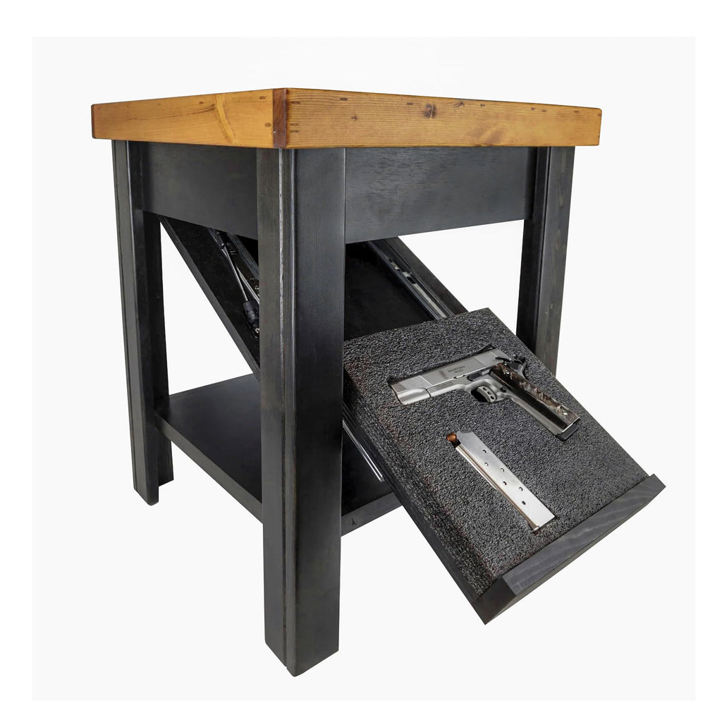 This elegant end table looks like a designer piece, yet a magnetic key releases a concealed drop-down panel with customizable foam for valuables. Shape the foam to fit your items for true gun concealment or private storage, while the locally sourced wood and honey-pine top warm up the room. It’s concealment furniture that feels like furniture first. Searches include hidden gun nightstand, magnetic lock end table, furniture with secret compartment, and secret storage side table—ideal for holiday gifting to responsible owners.