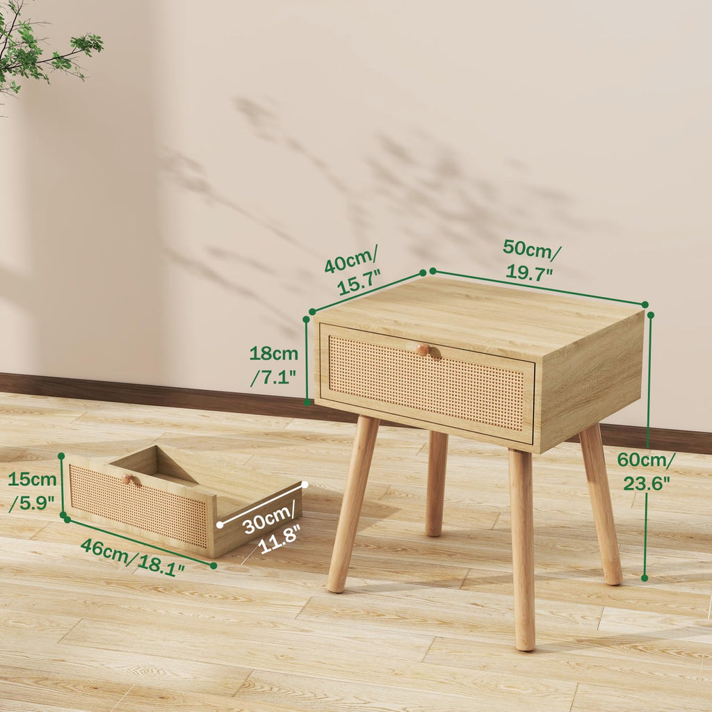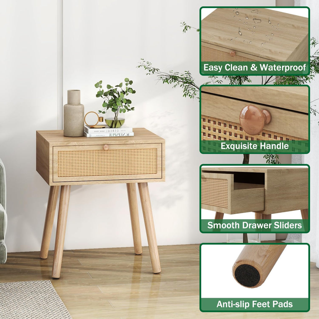 Rattan Nightstand with Hidden Compartment – Boho Bedside Table