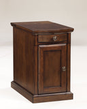 Details: So much form and function in a beautifully compact piece of furniture. This richly styled chairside end table puts it all within reach, including a flip-up top panel revealing a power port—perfect for keeping your phone or laptop charged. Hidden twin cup holders and interior shelved storage are also a welcome surprise.